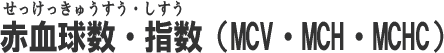 計算式 MCV= ヘマトクリット/赤血球数×10 MCH=ヘモグロビン/赤血球数×10 MCHC=ヘモグロビン/ヘマトクリット 貧血あるいは多血症を推測できる。 正常人では、赤血球数、ヘモグロビン濃度、ヘマトクリット値に多少の変動はあってもほぼ平行して動くが、貧血や多血症のときには必ずしもそうはいかない。 そこで、これらの数値から各種の赤血球指数を計算すると、貧血のおおまかな分類ができ、原因の推測や治療方針の決定に役立つ。